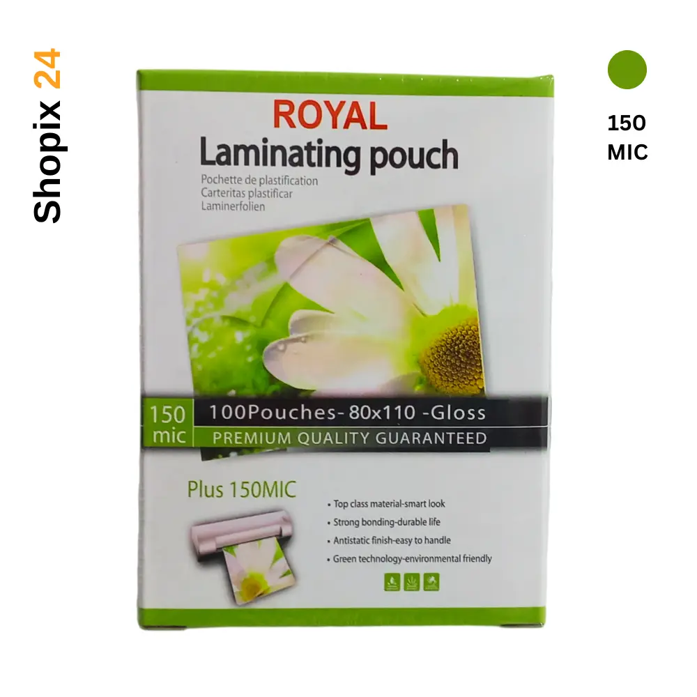 استفاده از طلق لمینت رویال در دستگاه‌های پرس کارت بسیار آسان بوده و به‌دلیل ضخامت استاندارد 150 میکرون، نتیجه‌ای کاملاً حرفه‌ای و یکدست ارائه می‌دهد. این محصول برای استفاده در ادارات، سازمان‌ها، مدارس، بانک‌ها و مراکز چاپ و تبلیغات بسیار کاربردی است.