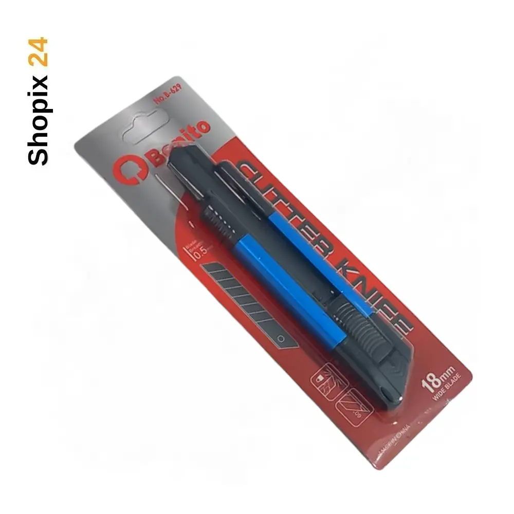 کاتر فلزی بنیتو تیغ 18، ابزار حرفهای و پرکاربرد برای برش دقیق انواع کاغذ، مقوا، نایلون و مواد سبک دیگر است. این کاتر با طراحی ارگونومیک و تیغهی مقاوم، به شما تجربهای آسان، ایمن و سریع در انجام کارهای روزمره یا پروژههای حرفهای ارائه میدهد.